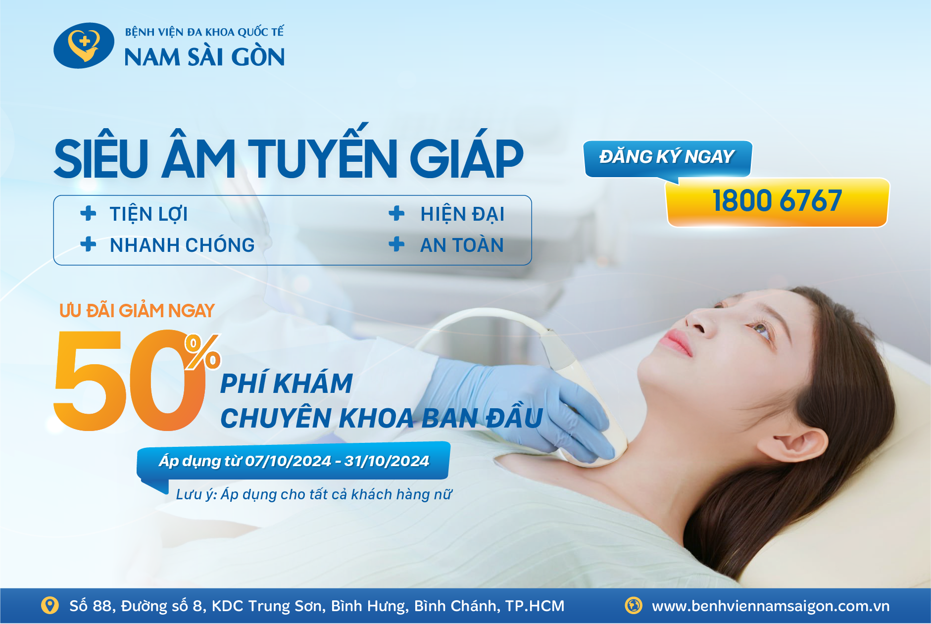 Chương trình ưu đãi GIẢM 50% PHÍ KHÁM BỆNH NGOẠI TRÚ TỪ CHUYÊN KHOA THỨ 2 nhằm mang đến cho người bệnh trải nghiệm chăm sóc sức khỏe chất lượng cao với chi phí ưu đãi tại Bệnh viện Đa khoa Quốc tế Nam Sài Gòn, hiện vẫn đang được áp dụng.