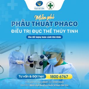 Với những ưu điểm kể trên, phương pháp phẫu thuật Phaco được Bệnh viện Đa khoa Quốc tế Nam Sài Gòn và Hội từ thiện Social Assistance Program for Vietnam (SAP –  VN) lựa chọn mang đến trong chương trình Khám và điều trị đục thủy tinh thể (cườm khô) MIỄN PHÍ lần này với thông tin như sau: