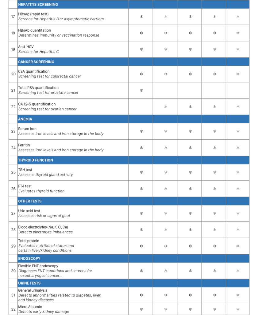 - Those who want a comprehensive and regular health check-up at a reasonable cost, delivered with high-standard medical services.