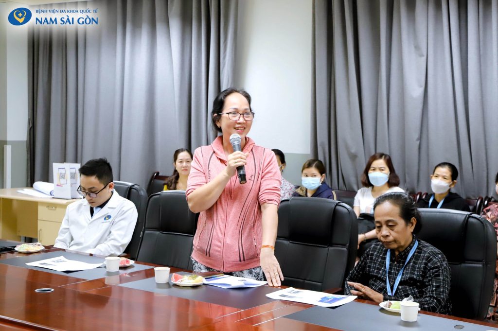 Chia sẻ tại chương trình, bà T.T.T.L cho biết: “Tôi đã sử dụng dịch vụ của nhiều bệnh viện khác, nhưng khi đến với Bệnh viện Đa khoa Quốc tế Nam Sài Gòn, tôi thực sự bất ngờ với chất lượng dịch vụ. Tôi và gia đình rất hài lòng về dịch vụ thăm khám và chăm sóc sức khỏe tại đây. Từ nhân viên bảo vệ, lễ tân đến cả điều dưỡng, các bác sĩ tất cả cũng rất nhiệt tình và chu đáo với người bệnh. Người thân tôi đang nhập viện điều trị tại khoa Ngoại thần kinh, được bác sĩ Đức Anh chăm sóc và thăm khám rất nhiệt tình, chúng tôi rất quý bác sĩ”.