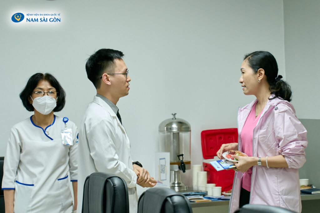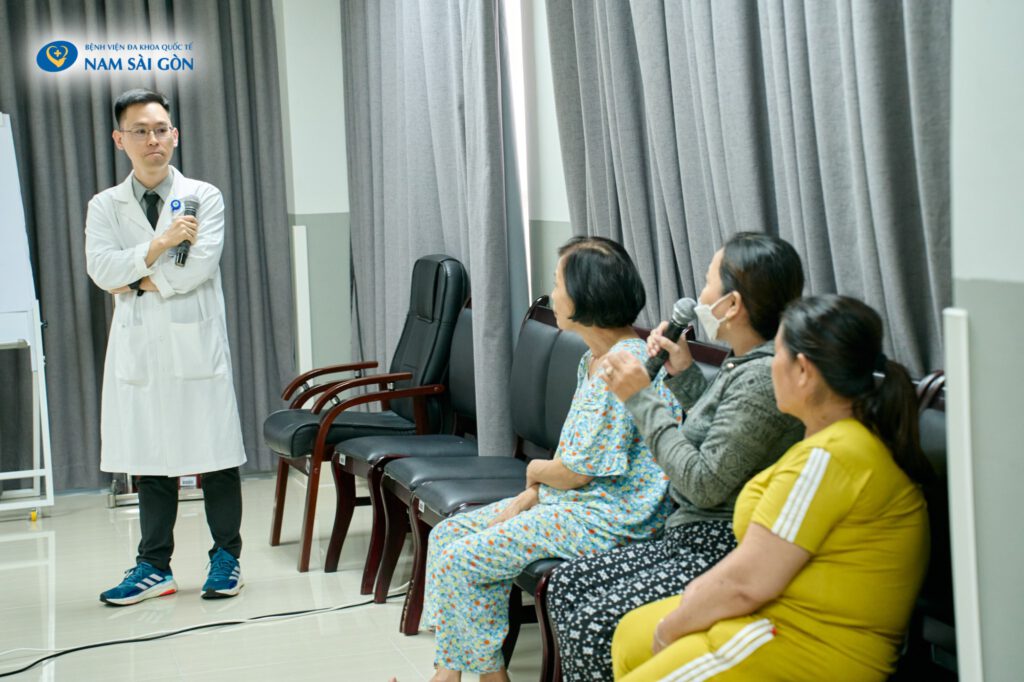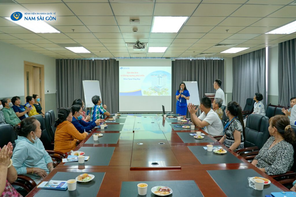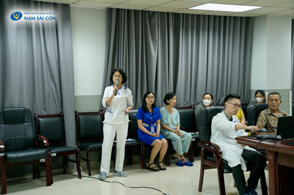 នារសៀលថ្ងៃទី29 ខែសីហា ឆ្នាំ2024 នាយកដ្ឋានវះកាត់ទូទៅ – មន្ទីរពេទ្យNam Sai Gon បានរៀបចំកម្មវិធីប្រឹក្សានឹងចែករំលែកចំណេះដឹង រួមជាមួយនឹងការទំនាក់ទំនងអប់រំសុខភាពសម្រាប់អ្នកជំងឺ និងសាច់ញាតិអ្នកជំងឺដែលកំពុងសម្រាកព្យាបាលនៅមន្ទីរពេទ្យ។