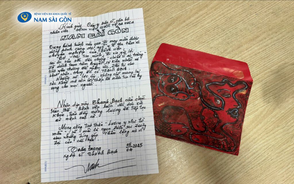 Lá thư tay MC Thanh Bạch gửi cảm ơn đến đội ngũ bác sĩ Bệnh viện Đa khoa Quốc tế Nam Sài Gòn