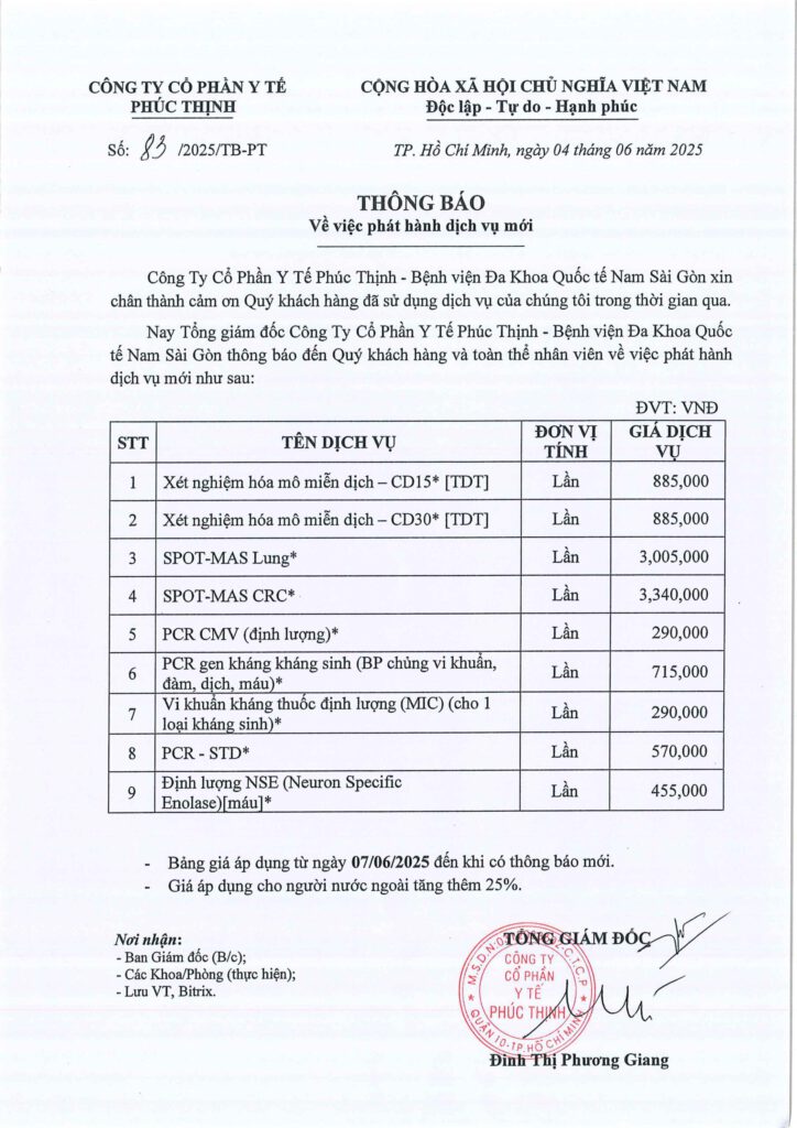 THÔNG BÁO VỀ VIỆC PHÁT HÀNH DỊCH VỤ MỚI TỪ 07-06-2025