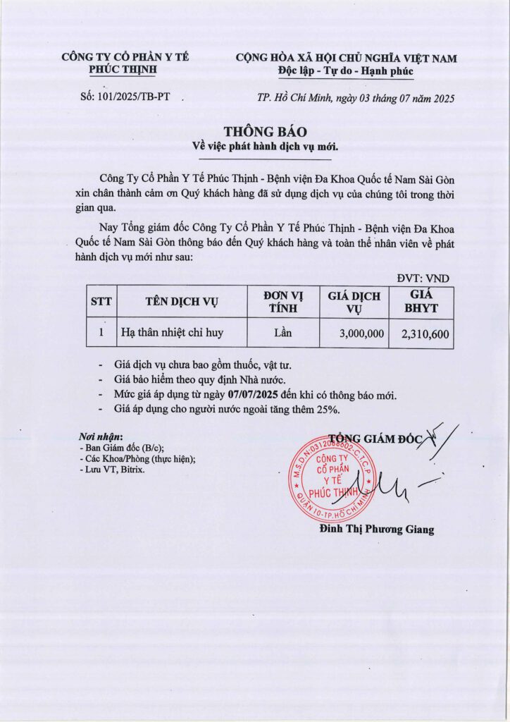 THÔNG BÁO VỀ VIỆC PHÁT HÀNH DỊCH VỤ MỚI TỪ 07-07-2025