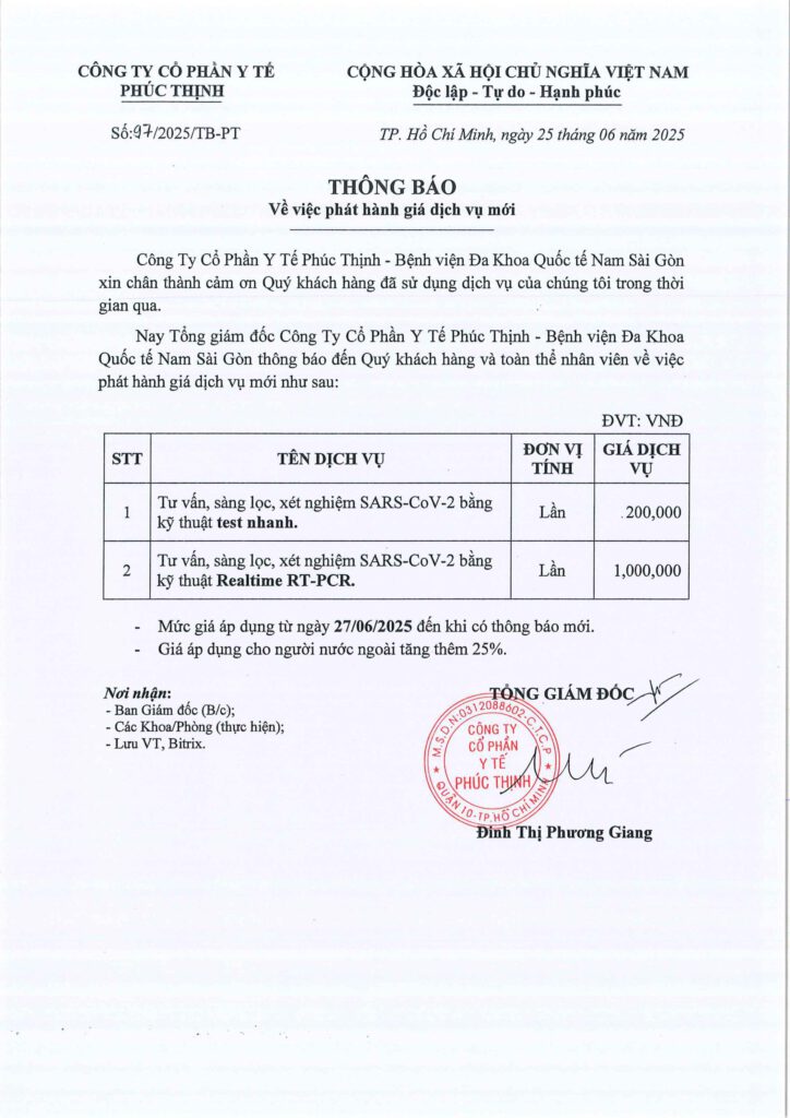 THÔNG BÁO VỀ VIỆC PHÁT HÀNH GIÁ DỊCH VỤ MỚI TỪ 27-06-2025