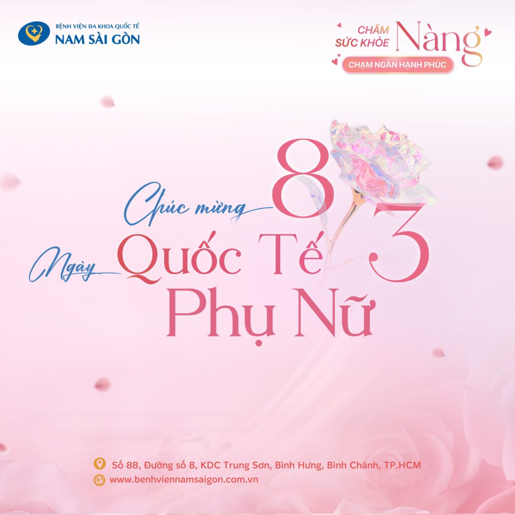Nhân ngày Quốc tế Phụ nữ 8/3, Bệnh viện Đa khoa Quốc tế Nam Sài Gòn xin gửi đến phái đẹp những lời chúc tốt đẹp nhất: Sức khỏe dồi dào, hạnh phúc viên mãn và luôn rạng rỡ mỗi ngày!
