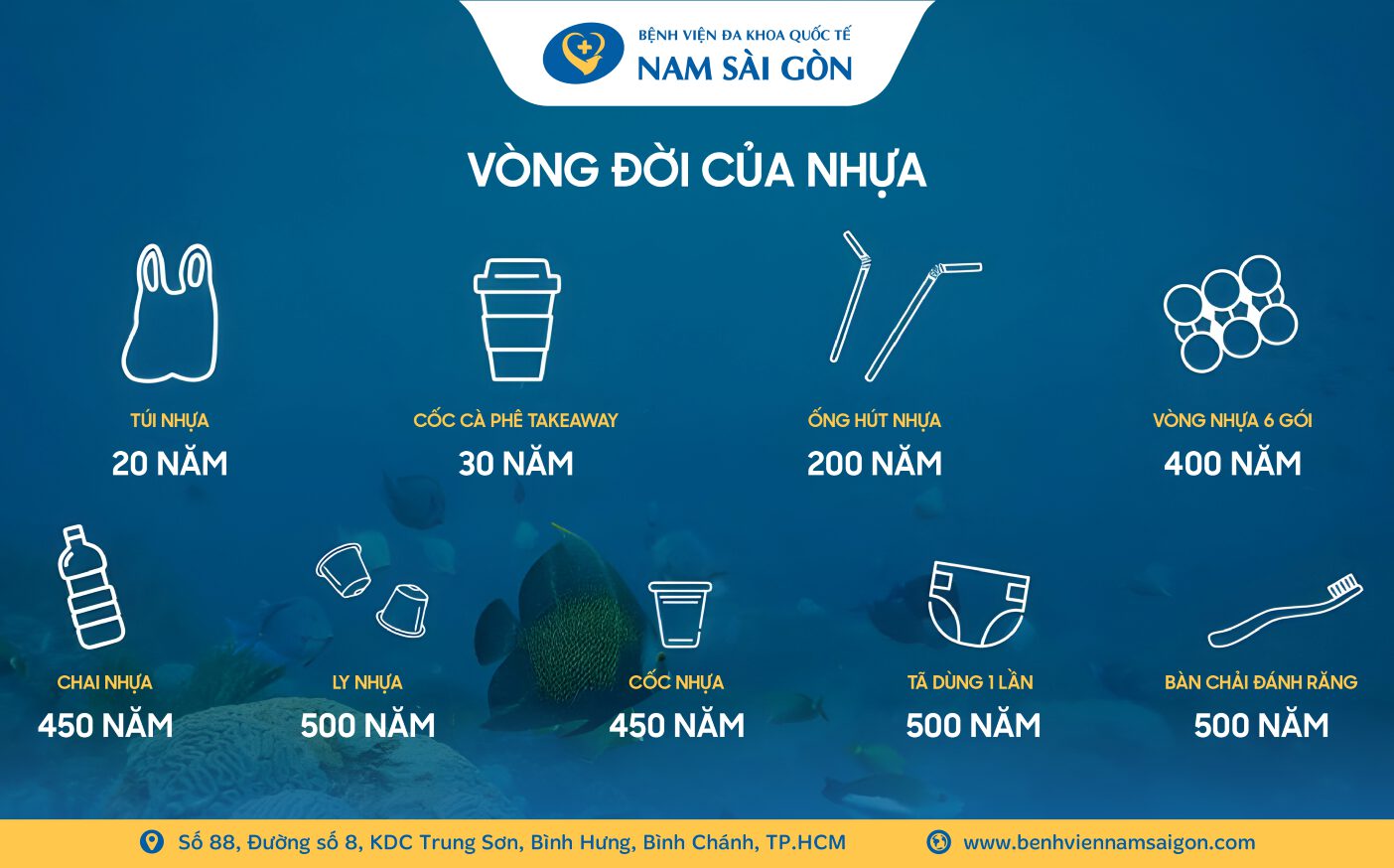 Ngày Môi trường Thế giới 5/6 hằng năm là dịp để toàn cầu cùng nhìn lại và hành động thiết thực vì một hành tinh xanh – sạch – đẹp. Hưởng ứng Tháng hành động vì môi trường, Bệnh viện Đa khoa Quốc tế Nam Sài Gòn tiếp tục lan tỏa thông điệp “Chung tay giảm thiểu chất thải nhựa – Cùng nhau bảo vệ hành tinh xanh” bằng những hành động cụ thể, thiết thực ngay trong chính hoạt động khám chữa bệnh hằng ngày.
