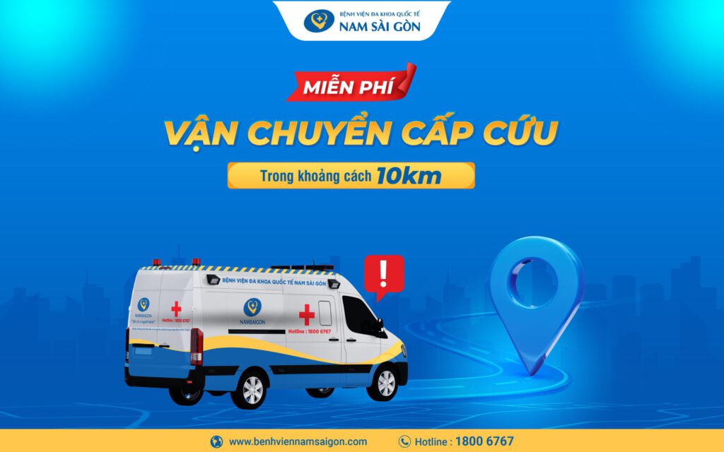 Bệnh viện Đa khoa Quốc tế Nam Sài Gòn đang triển khai chương trình: Miễn phí vận chuyển cấp cứu trong khoảng cách 10km! Đây là chương trình đặc biệt được Bệnh viện Đa khoa Quốc tế Nam Sài Gòn triển khai với mục tiêu hỗ trợ người bệnh trong những tình huống khẩn cấp.