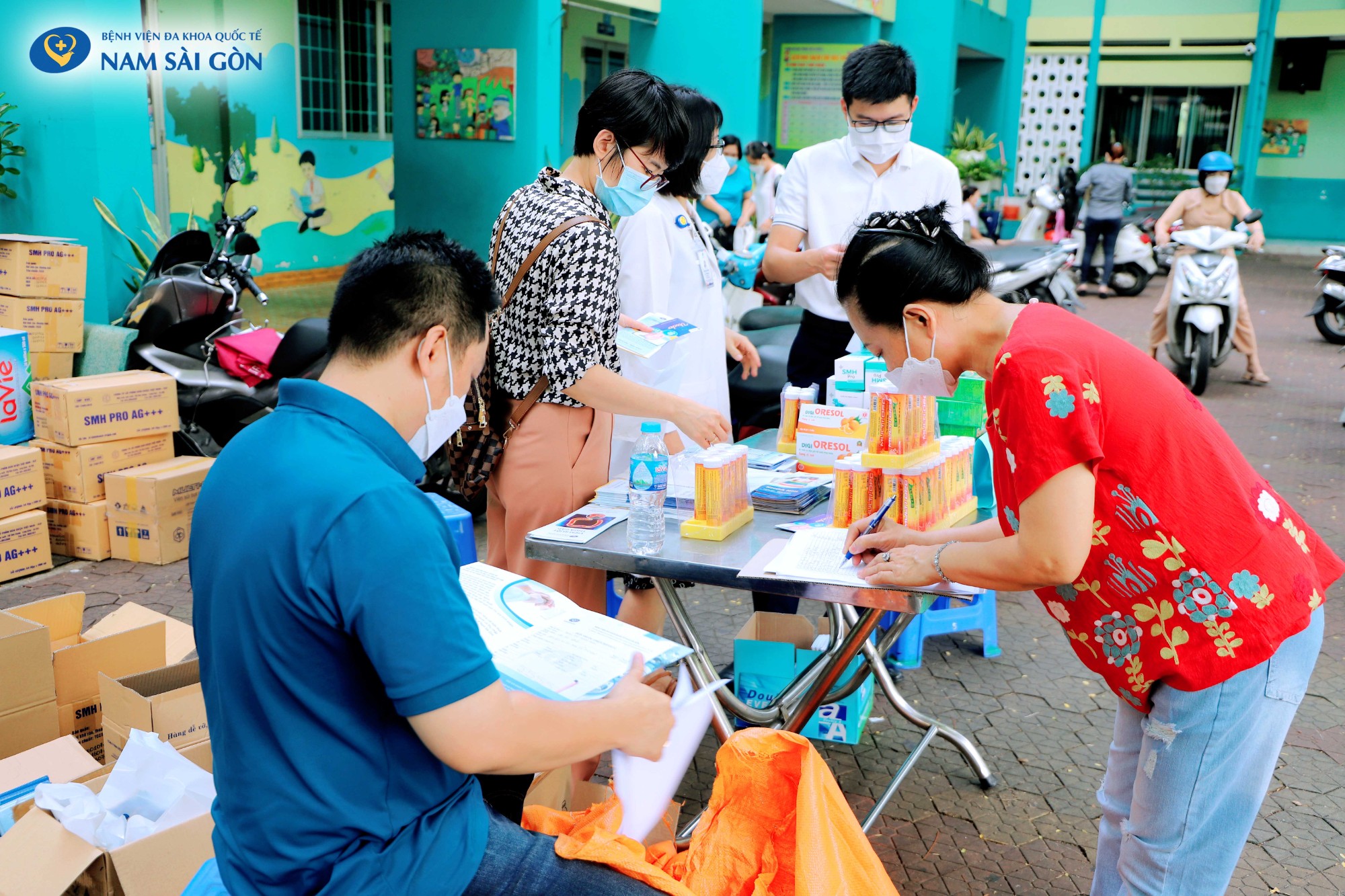 Trong đợt khám sức khỏe tình nguyện ngày 14/05/2022 này, Y Bác sĩ, điều dưỡng của Bệnh viện Đa khoa Quốc tế Nam Sài Gòn đã tiến hành khám chữa bệnh, tư vấn, cấp thuốc miễn phí cho hơn 400 người lao động quận 10 đã từng mắc Covid-19.