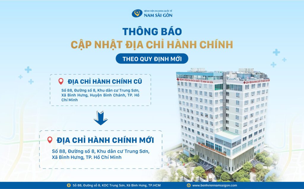 Bệnh viện Đa khoa Quốc tế Nam Sài Gòn xin trân trọng thông báo đến Quý khách hàng và Quý đối tác. Từ ngày 01/07/2025, địa chỉ chính thức của Bệnh viện sẽ được cập nhật như sau: