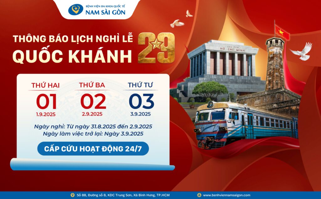 Bệnh viện Đa khoa Quốc tế Nam Sài Gòn xin trân trọng thông báo lịch làm việc trong dịp Lễ Quốc Khánh 2/9 như sau: