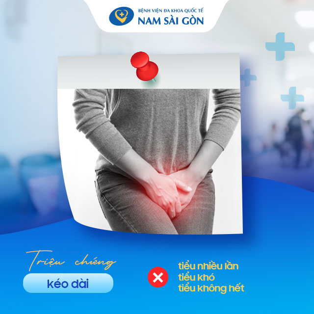 - Các triệu chứng tắc nghẽn: Khó đi tiểu, tiểu ngập ngừng, dòng tiểu yếu, tiểu không hết…